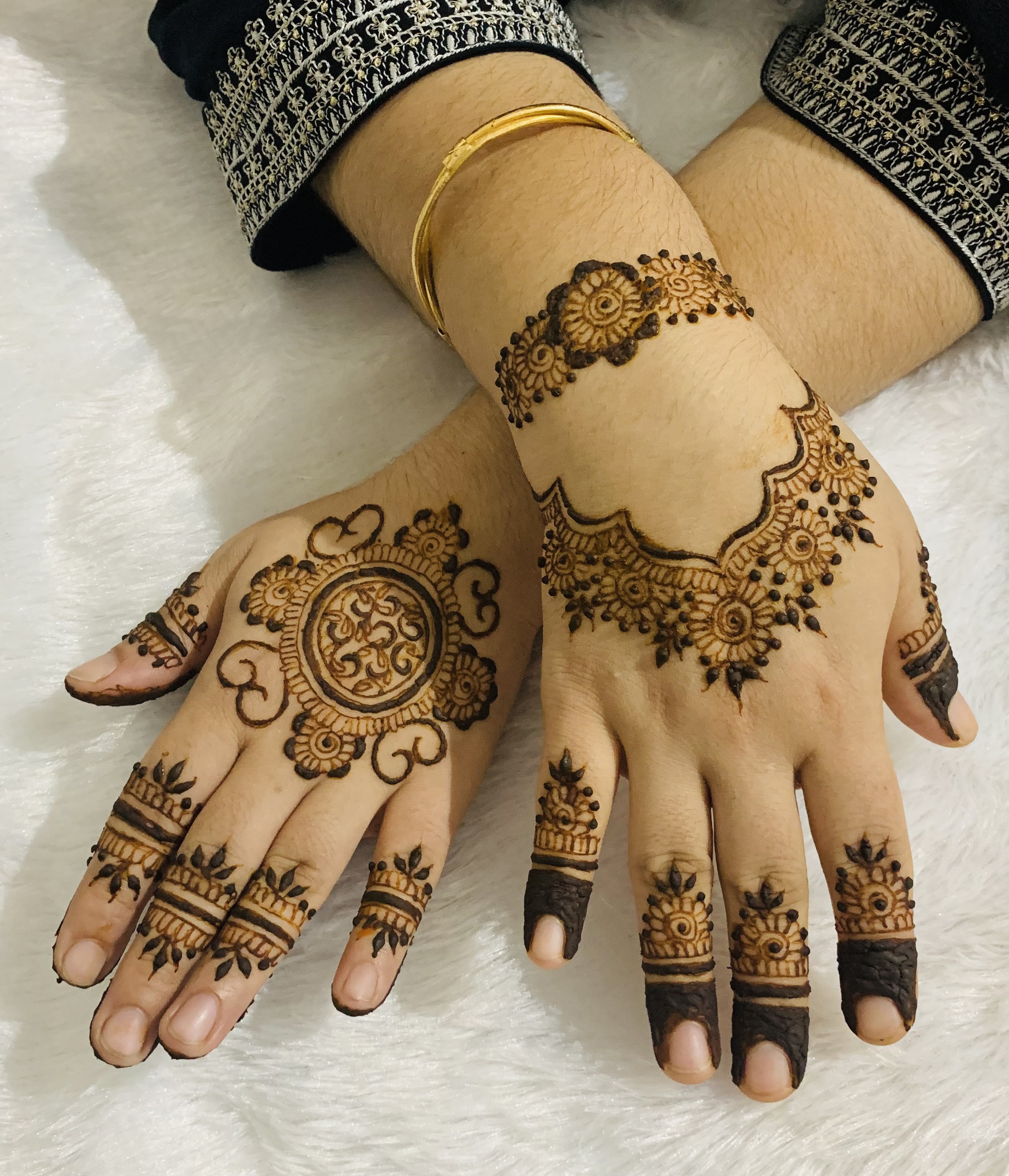 "Absolutely loved the henna work" The design was neet and elegant.Very proffesional service.I am happy.